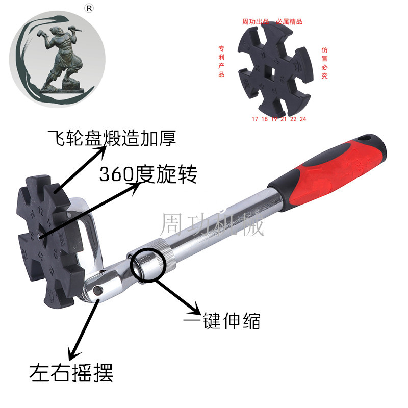倒鉤槽防滑落、再加360度旋轉(zhuǎn)和90度左右搖擺、不滑落又能用上力,只要一把扳手難拆銹死的前束螺絲就迎刃而解了。